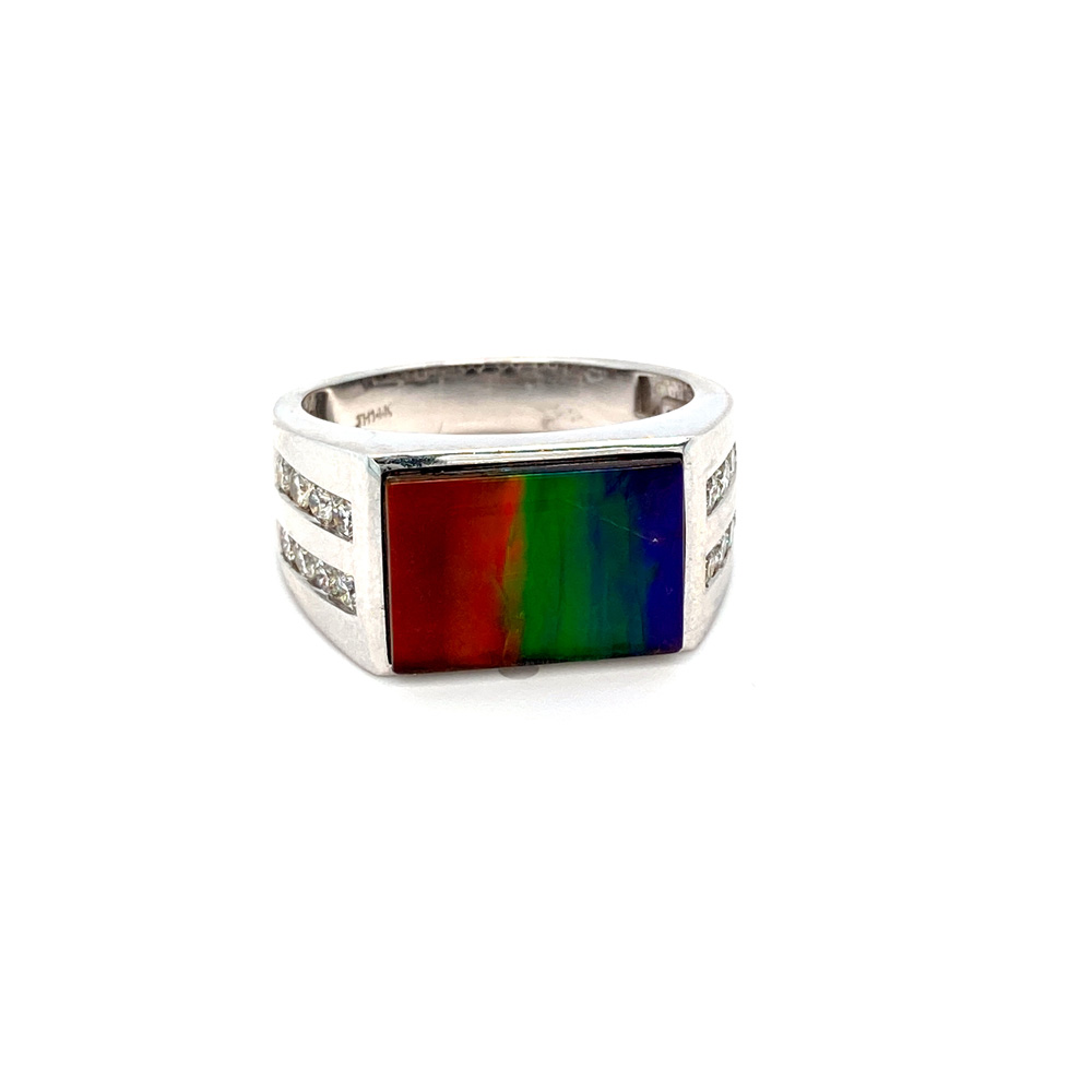 Ammolite Ladies Ring Set in 14K Yellow Gold With AAA Quality 10X8MM Oval Center Gemstone.