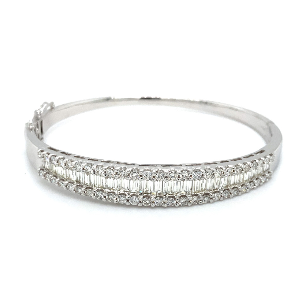 Diamond Bangle Set in 14K White Gold With Baguette Shaped White Diamonds Totaling 3.20CT and Side Round Diamonds Totaling 2.36CT