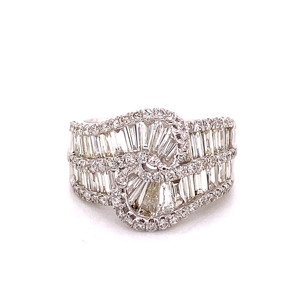 Diamond Ladies Ring Set in 14K White Gold With Round Diamonds Totaling 2.13CT and Baguette Diamonds Totaling 2.76CT