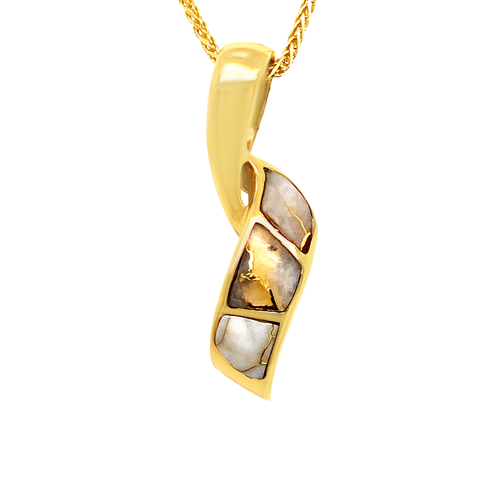 White Glacier Gold Pendant Set In 14K Yellow Gold With Inlay White Glacier Gold And 12 Side Diamonds Totaling 0.33CT