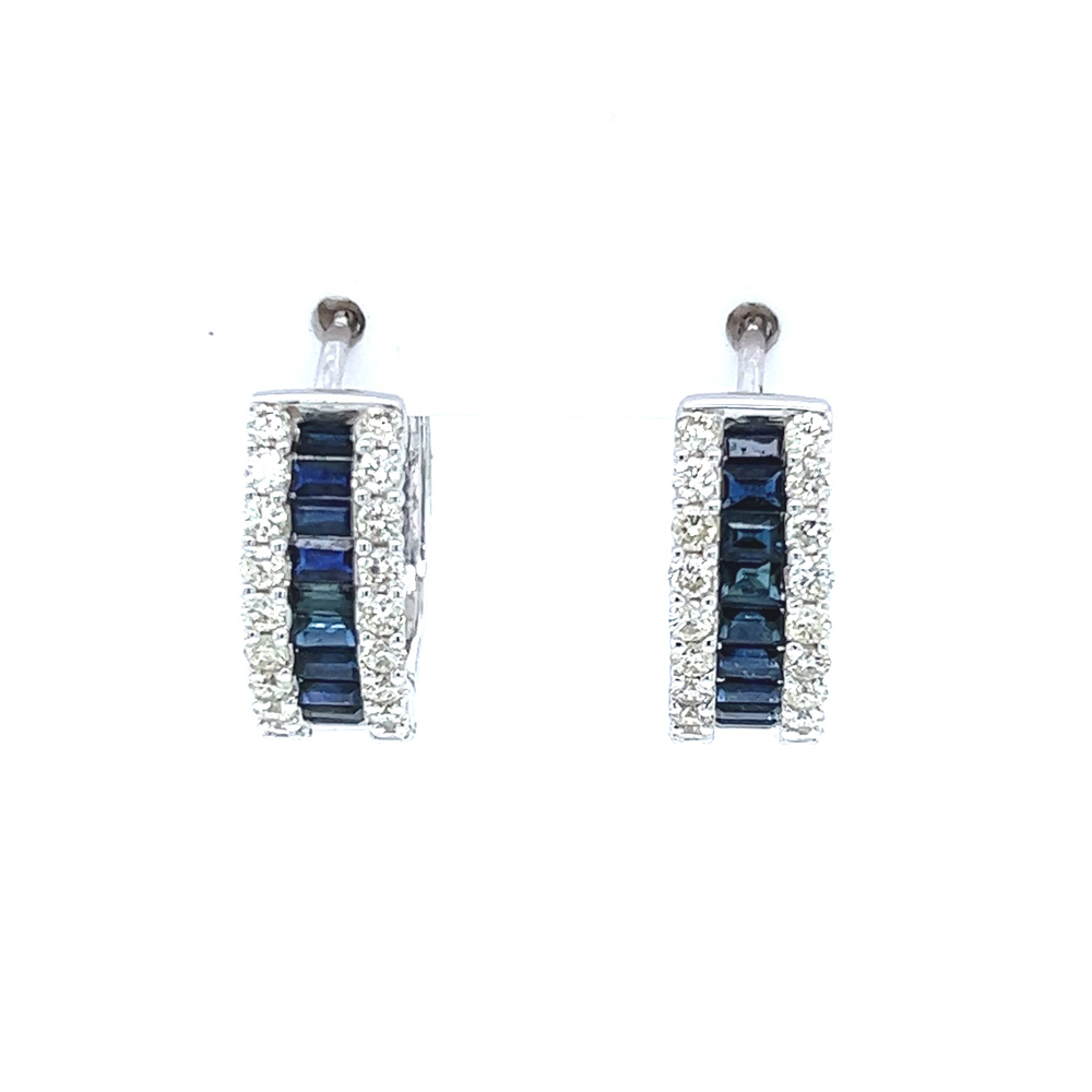 Ruby In & Out Hoop Earring Set in 14K White Gold With 4.69CT Baguette Shaped Ruby and Side Round Diamonds Totaling 0.65CT