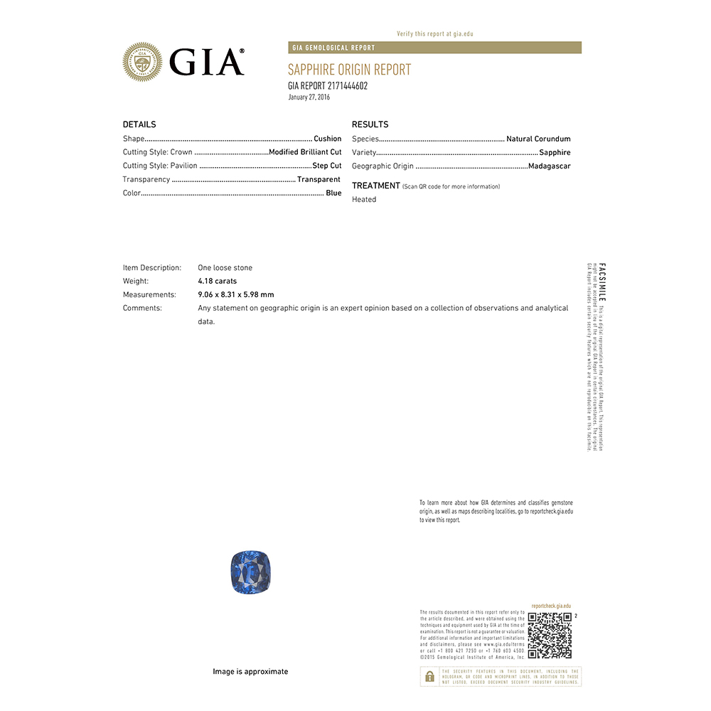 Blue Sapphire Ring Set In 18K White Gold With 4.18CT Cushion Center Gemstone And Side Round And Baguette Diamonds Totaling 1.88CT This Piece Comes With A GIA Certificate