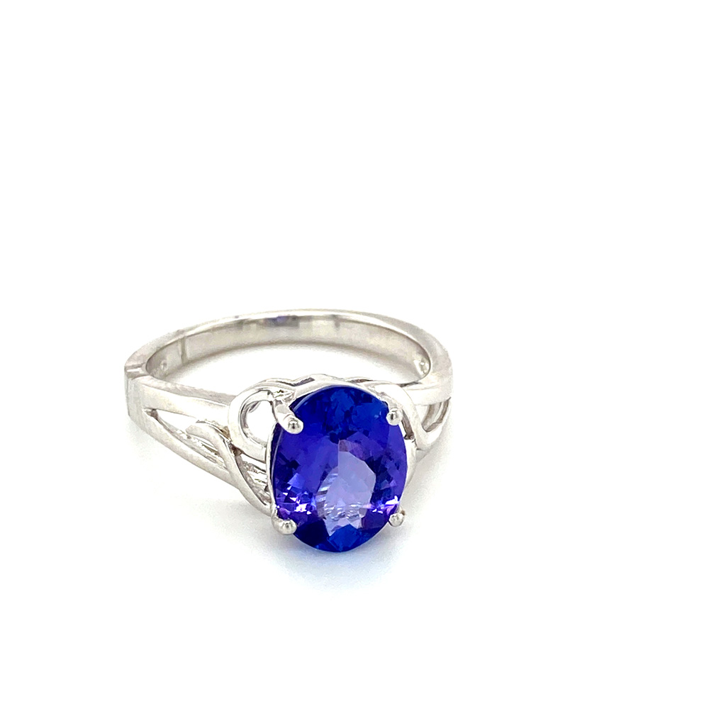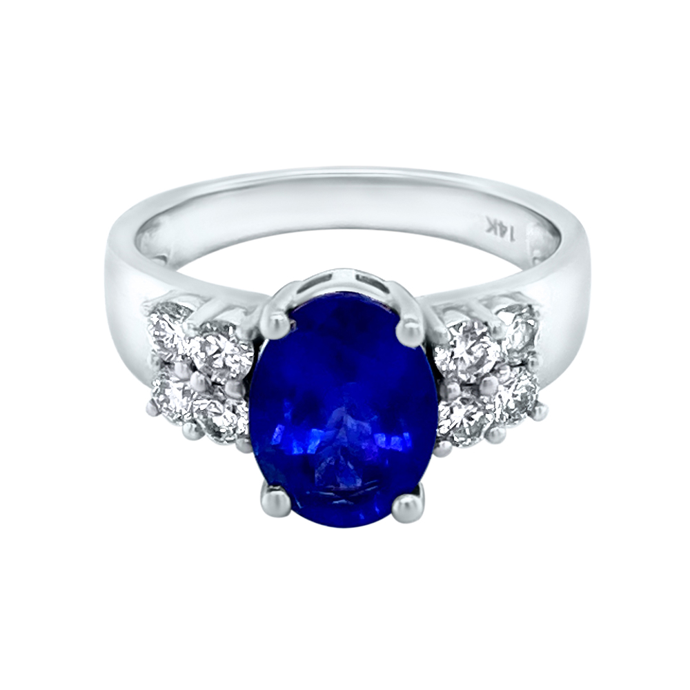 Tanzanite Ladies Ring Set In 14K White Gold With 3.26CT Rectangular Center Gemstone And Side Round And Baguette Diamonds Totaling 0.99CT